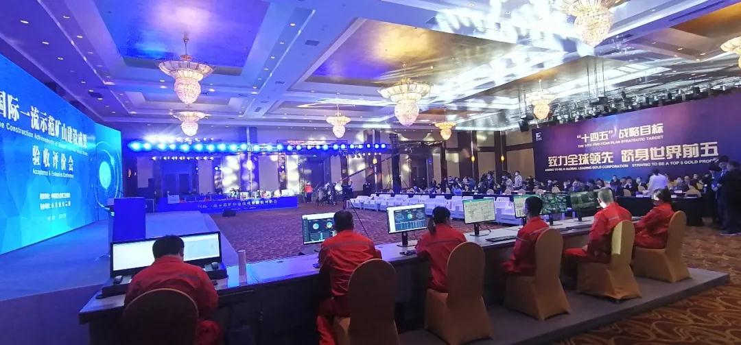 與會(huì)人員觀看了“國際一流示范礦山”建設(shè)成果專題片,現(xiàn)場(chǎng)觀摩了建設(shè)成果,并通過在會(huì)場(chǎng)搭建的調(diào)度中心,實(shí)現(xiàn)對(duì)三山島金礦作業(yè)現(xiàn)場(chǎng)的遠(yuǎn)程調(diào)度與控制,展示了礦山在大數(shù)據(jù)、5G通信、遠(yuǎn)程集控等方面取得的成果。